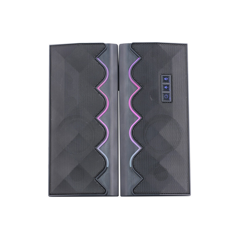 Stisknutím tlačítka hlasitosti +/- upravíte hlasitost. Prostřednictvím Bluetooth můžete reproduktory propojit s jakýmkoliv zařízením podporujícím Bluetooth, nebo můžete zvolit klasickou cestu tedy 3.5 mm jack konektor a USB napájení.