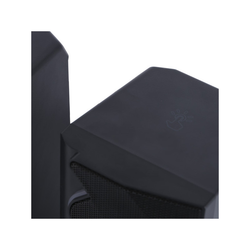 Stisknutím tlačítka na horní straně reproduktoru si volíte,zda chcete podsvícení vypnout nebo zapnout, můžete si také určit intenzitu podvísení. Reproduktory nabízí podsvícení 7 barev s duhovými efekty.