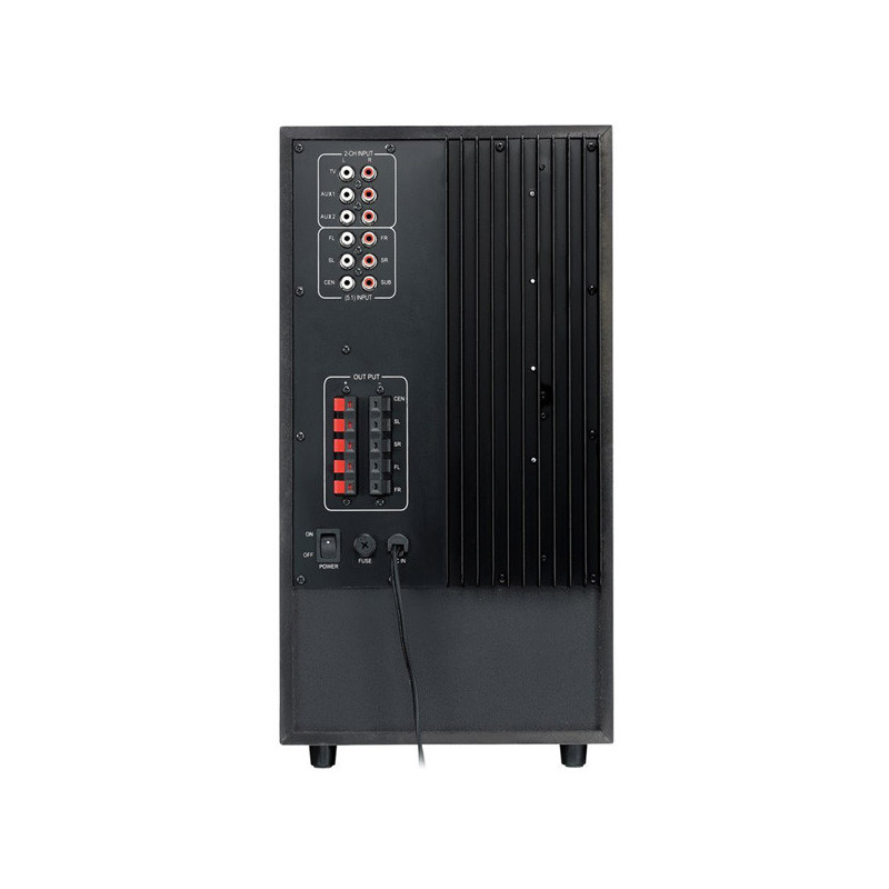 Tento systém 5.1 nabízí celkový výkon 200 W. Celá sestava je ve dřevě a to vám zajistí bezkonkurenční zvuk. Kvalitní subwoofer s 8" reproduktorem, který disponuje integrovaným zesilovačem a výkonem 75 W. Subwoofer je doplněn až čtyřmi satelity a jedním středovým reproduktorem s výkonem 4 x 24 W + 1x 30 W. Součástí balení je adaptér 100 - 240V a dálkové ovládání.