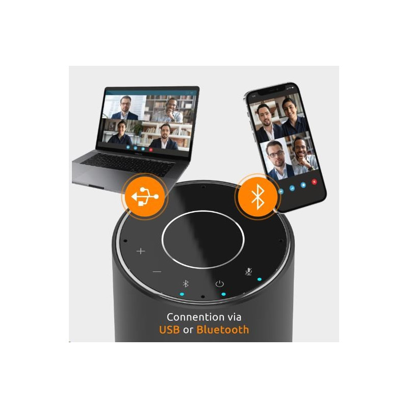 Reproduktor lze podle potřeb připojit pomocí Bluetooth 5.0 nebo USB kabelu. Tento reproduktor konferenční kvality se snadno používá a je intuitivní, což znamená, že se můžete soustředit na svůj meeting namísto toho, abyste se stresovali, zda bude technika fungovat.