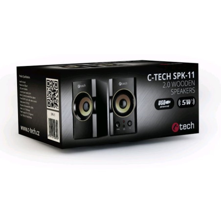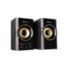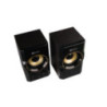 Dřevěné reproduktory SPK-11 v elegantním černo-zlatém provedení Vás překvapí svým hlasitým a čistým zvukem o výkonu 5W RMS. Jsou skvělou volbou nejen pro ty, kterým už nestačí zabudované reproduktory v jejich notebooku. Nabíjeny jsou ze standardního USB portu a nabídnou také ovládání na předním panelu a výstup na sluchátka.