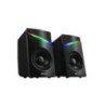 Kompaktní PC reproduktory C-tech SPK-15 2.0 vám zprostředkují kvalitní zvuk s výkonem 6W a frekvenčním rozsahem 150-20kHz. O jedinečnou atmosféru při poslechu hudby se postará automatické RGB podsvícení. K ovládání hlasitosti poslouží praktický ovladač, který je umístěn přímo na propojovacím kabelu. K tomuto ovládacímu prvku tak máte vždy bezproblémový přístup, takže můžete zvuk kdykoliv ztlumit či zesílit opravdu komfortně. Připojení soustavy k zařízením zajistí kabel s 3,5mm jackem, napájení zase USB kabel.