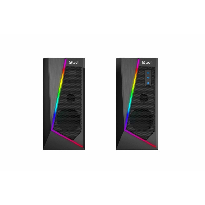 Stolní PC reproduktory C-tech SPK-17 s elegantním designem a decentním RGB osvětlením se stanou stylovým doplňkem každého pracovního stolu. Díky 40mm měničům s širokým frekvenčním rozsahem dopřejí vašim uším velmi kvalitní reprodukci. RGB osvětlení disponuje 6 různými světelnými režimy, které vám zaručí originální vizuální zážitky. Volba režimu je velmi jednoduchá a to dotykem na horní ploše řídícího reproduktoru. Reproduktory připojíte k počítači pomocí 3,5mm audio kabelu a nemusíte si dělat starosti ani s přídavným napájením, protože reproduktory C-tech SPK-17 jsou napájené přímo z USB vašeho počítače a tak se Vám automaticky spustí či vypnou společně s počítačem či notebookem. K ovládání hlasitosti poslouží tlačítka nacházející se na jednom z reproduktorů. Společně s ovládáním hlasitosti, je možno stiskem dalšího tlačítka vypnout RGB podsvětlení reproduktoru.
