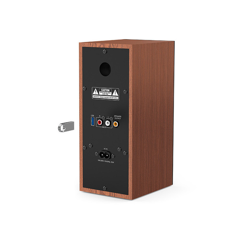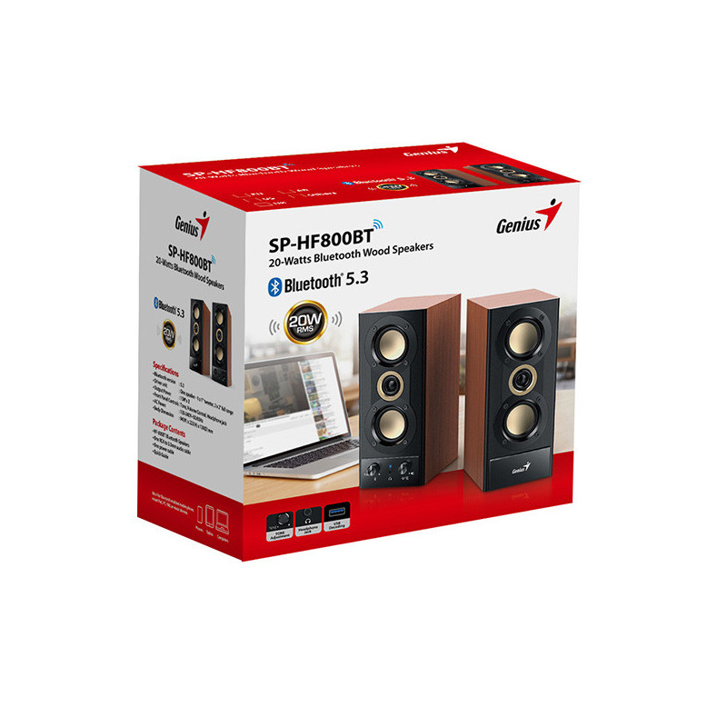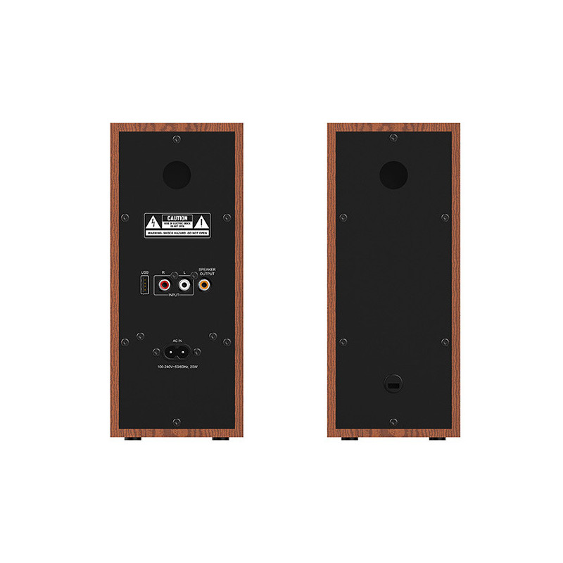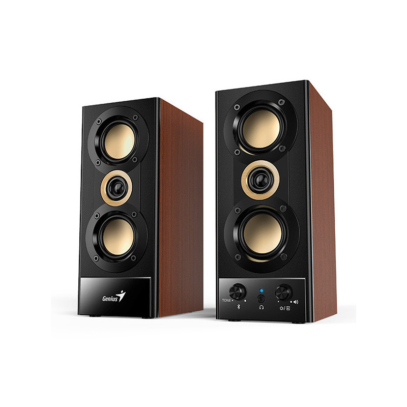 Sada reproduktorů s v konfiguraci 2.0 s celkovým výkonem 20 W. Vyrobeny jsou ze dřeva pro docílení toho nejlepšího zvuku s plnými basy i zřetelnými výškami. Připojení k počítači, notebooku či chytrému telefonu lze jednoduše realizovat drátově skrze audio vstup, nebo bezdrátově pomocí Bluetooth. K dispozici je také sluchátkový výstup a USB vstup. Ovládání hlasitosti a tónů je umístěno přímo na reproduktoru.