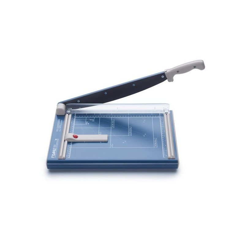 Kompaktní řezačka pro kutily* Stabilní kovový nůž se zaoblenými hranami a neklouzavými pryžovými patkami* Praktické úchytné prohlubně pro bezpečné přenášení* Natištěné DIN formáty* Ergonomicky tvarovaná rukojeť* Horní nůž z oceli pro přesné řezy* Spodní nůž z oceli pro přesné výsledky* Manuální přítlak pro zafixování řezaného materiálu* Dva úhlové příložníky se stupnicí v mm pro přesný řez 90* Délka řezu 340 mm* Výška řezu 1,5 mm* Řezný výkon 15 listů papíru A4* Integrovaná ochrana prstů