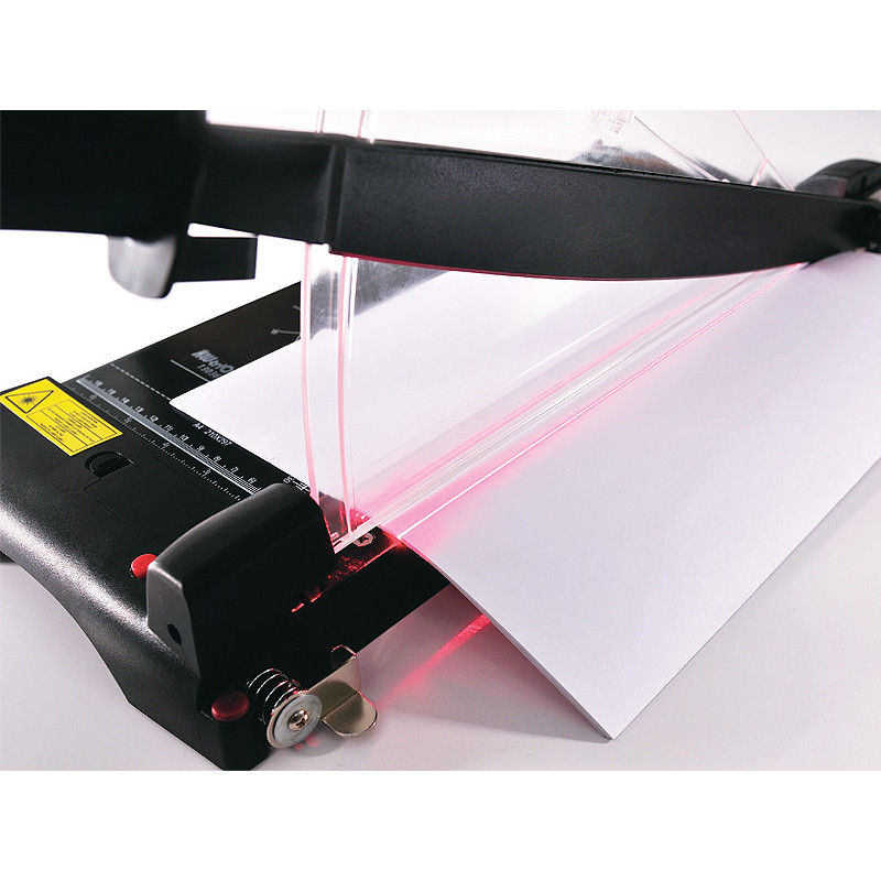 Kvalitní páková hobby řezačka s komfortní a snadnou obsluhou díky značení místa řezu laserem. Umožňuje řez až 10-ti listů papíru najednou do formátu A4. Ideální pro občasné využití v kanceláři i v domácnosti.Kvalitní páková hobby řezačka A4 Maximální délka řezu 315mm a kapacita do 10 listů Značení místa řezu laserem (2xAAA) Základna z pevného ocelového plechu Ruční přítlak s ochranným krytem DIN formáty a mm dělení vyznačené na stole
