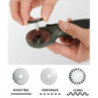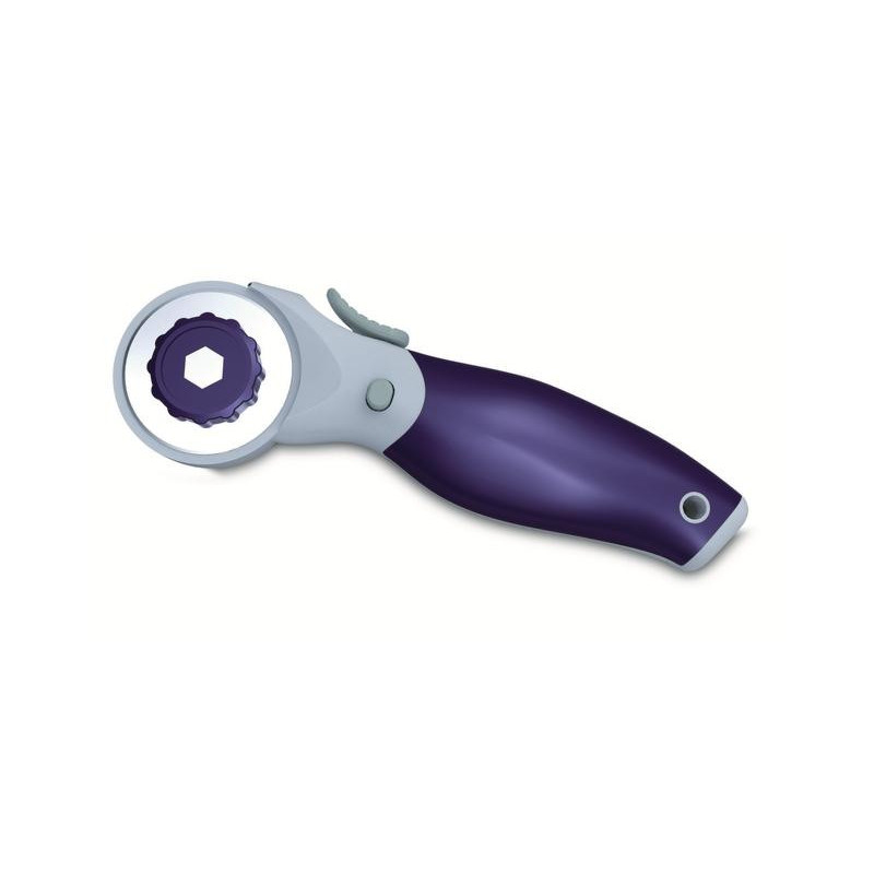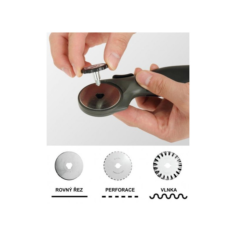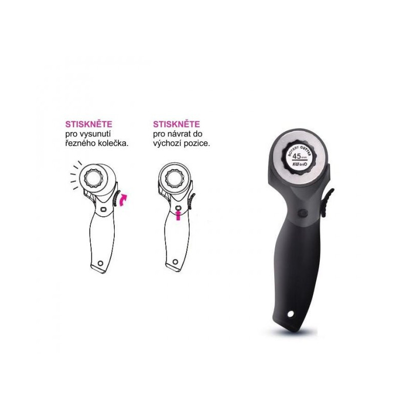 Ruční řezačka na papír moderního designu. Ergonomické madlo s výměnným rotačním nožem v ceně nástroje. Jednoduchou výměnou řezného kotouče dosáhnete vlnkového nebo perforačního řezu (nejsou součástí dodávky). Stisknutím pojistky na rukojeti dojde k bezpečnému vysunutí čepele. Snadné pro použití jak pravou, tak i levou rukou. Průměr rotačního nože 45 mm.Vhodné použití na řezací podložce KW-Trio. Ochráníte tím pracovní stůl, dosáhnete kvalitnějšího a přesnějšího řezu. Doporučujeme doobjednat- formát A3 nebo A2.Více o značce KW-triO