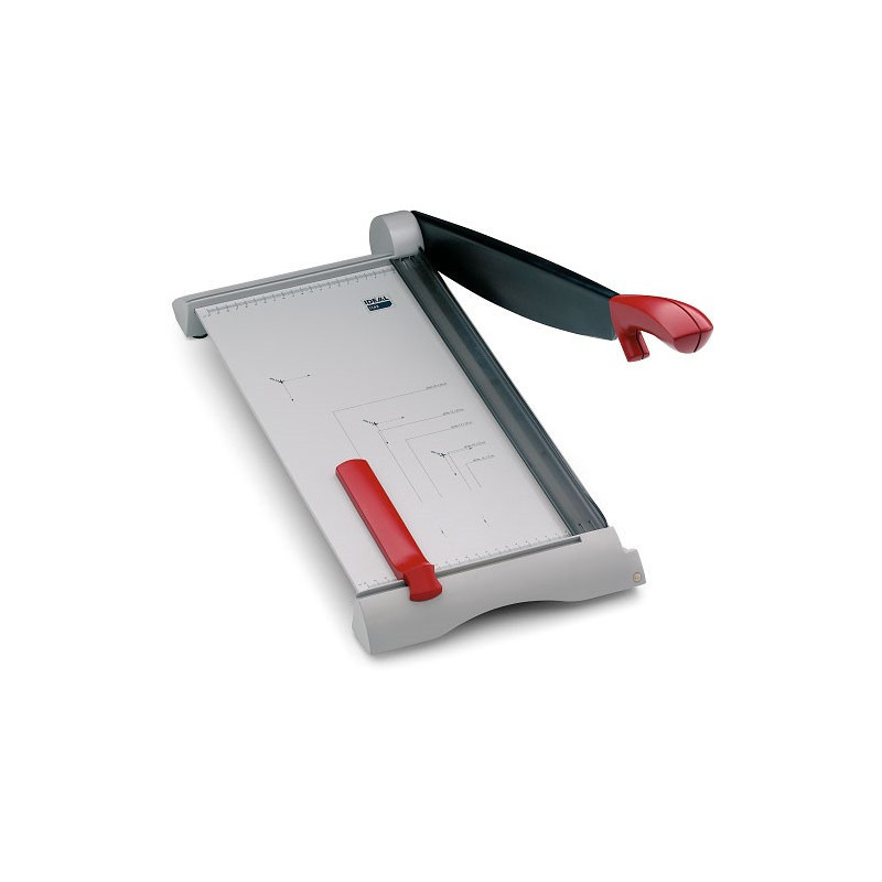 ŘEZAČKA PRO FORMÁTY DO VELIKOSTI A3 atraktivní design transparentní přítlačná lišta s ochranou proti vložení prstů pod pohyblivé rameno s integrovaným vyznačením místa řezu ostrý nůž umístěn na hraně pracovní desky, „tupý“ nůž je tvořen pohyblivým ramenem dvě stupnice - cm/mm (vpředu i vzadu) zadní doraz je možné umístit k přední nebo zadní stupnici předkreslené formáty A4 - A6 a běžné foto-formáty vyznačené na pracovní desce