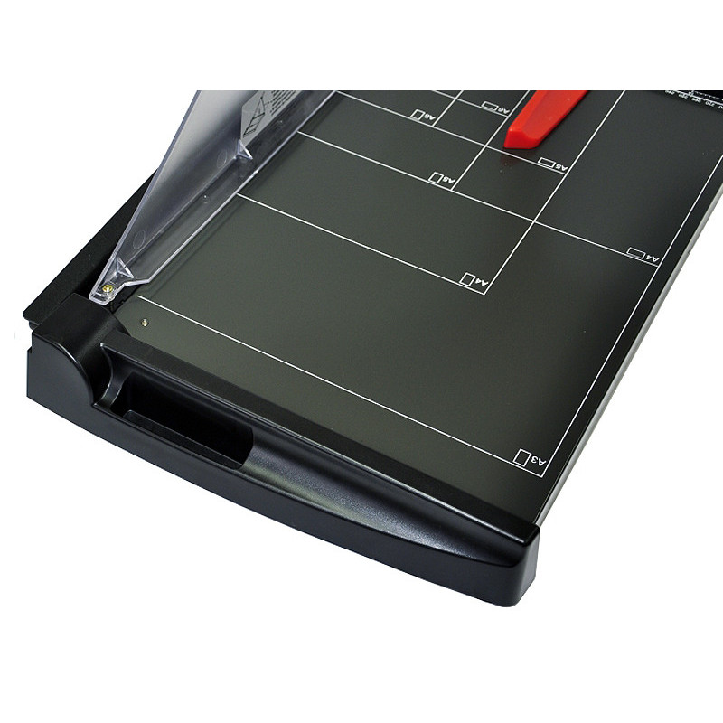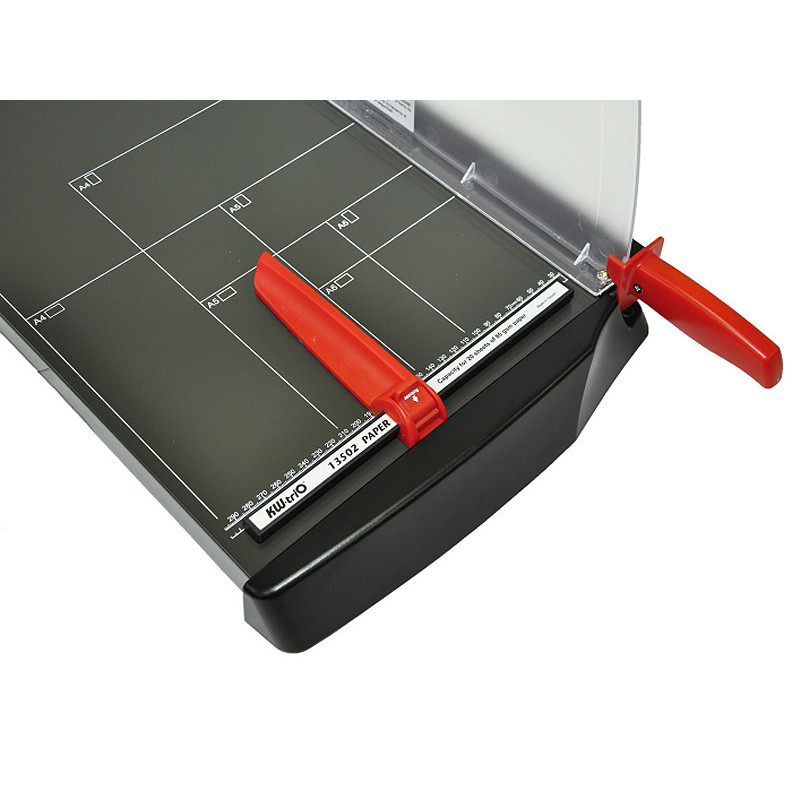 Výkonná páková řezačka s kovovým stolem a plastovým ochranným krytem. Na stole je lišta s měřítkem, zadním dorazem a jsou na něm vyznačeny běžné DIN formáty A3 - A6. Maximální kapacita 20 listů (70g/m2). Vhodná pro kanceláře i na úpravu fotek. Délka řezu je 449 mm.Maximální kapacita 20 listů (70g/m).Vhodná pro kanceláře a na úpravu fotek.