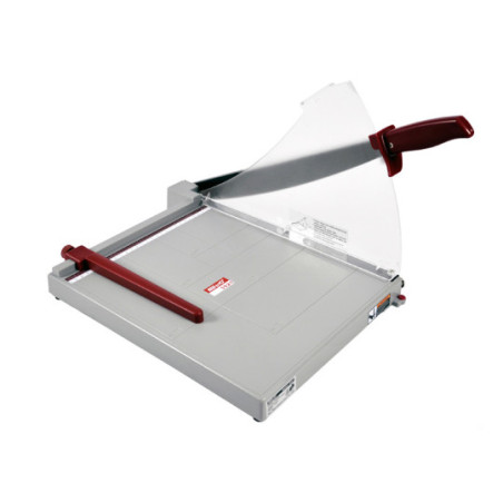 Hobby páková řezačka A4 s plastovým ochranným krytem a plastovou základnou s oděruvzdorným povrchem ABS, s vyznačenými měřítky a DIN formáty a posuvným dorazem......