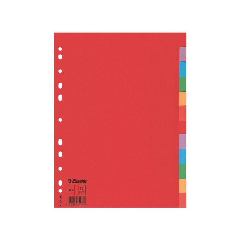 Rozlišovače ze silného recyklovaného kartonu pro třídění dokumentů v pořadačích či deskách do formátu A4 bez popisovatelné titulní strany. Jednotlivé stránky v různých barvách.