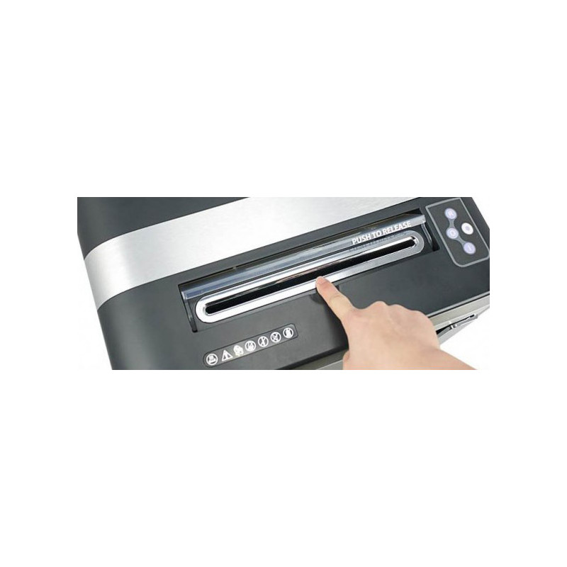 Kvalitní skartovací stroj ergonomického designu, vhodný pro skartaci dokumentů o šířce 230 mm. Skartovač je vybaven bezpečnostní funkcí Safe Touch, která zastaví stroj při dotyku vstupní štěrbiny rukou.Dotykový panel pro snadné ovládání. Stroj je standardně vybaven automatickým systémem start/stop, zpětným chodem, tepelnou pojistkou motoru proti přehřátí a signalizací přeplněného koše.Stroj je opatřen kolečky pro snadnou manipulaci. Lze skartovat sešívací a kancelářské sponky. Samostatný vstup na kreditní karty nebo CD. Tichý chod stroje-55 dB. Lehce vyprázdnitelná odpadní nádoba o objemu 35 l. Stupeň utajení dle vyhlášky č. 528/2005 - V - vyhrazené. Součástí stroje jsou pojezdová kolečka.