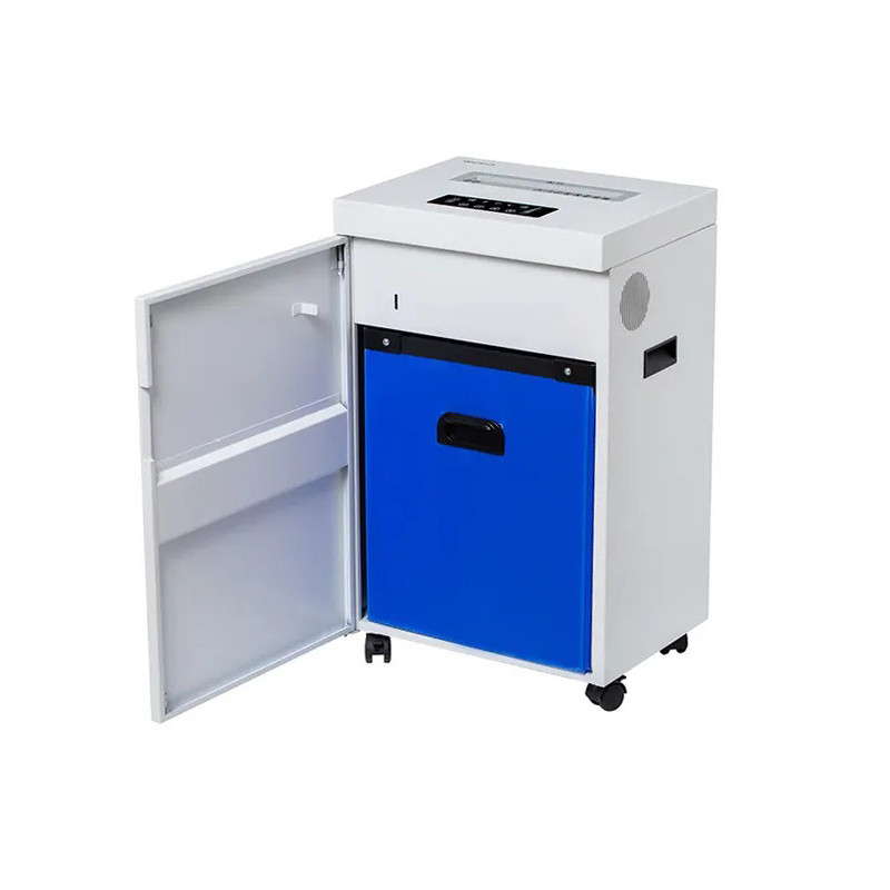 Výkonný skartovač pro střední a velké kanceláře v kovovém uložení s informativním dotykovým ovládacím systémem. Inovativní nože z vysoce legovaných kovů. Úroveň zabezpečení P5. Velikost řezu je 2x15mm. Skartuje 15 listů (80g/m2). Šířka vstupu 240mm. Nepřetržitá práce 60 minut. LCD displej. Kromě toho skartuje sponky, kreditní karty a CD. Výsuvný koš 45 litrů. Vybaveno kolečky. Pracovní cyklus 60 min on/30 min off. Nízká hladina hluku. Úsporný režim (vypnutí po 2 minutách nečinnosti). Indikátory otevřených dvířek, přeplněných košů, přehřívání. Rozměry 430 x 330 x 710 mm. Hmotnost 29 kg. Záruka 1 rok.Vlastnosti:Typ řezu: Křížový Úroveň ochrany osobních údajů DIN 66399: P-4Velikost řezu: 2 x 15 mm Šířka řezu: 240mm Skartuje najednou listů: 15Skartace sponek, kancelářských sponek: AnoSkartace plastových karet: AnoSkartace CD: AnoObjem koše: 45 litrů Pracovní cyklus: práce 60 / odpočinek 30 minutZpěný chod: AutomatickáHmotnost kg: 29Rozměry (ŠxVxH): 430x330x710 mm