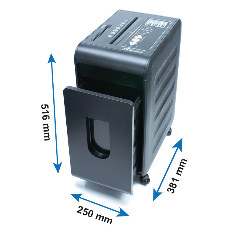 Skartovací stroj z řady SLIM line pro maximální úsporu místa pod stolem. Stroj je úzký, ale zachovává si standardní hloubku. Přináší velké parametry, které zaberou málo místa. Stroj je standardně vybaven automatickým systémem start/stop, zpětným chodem a tepelnou pojistkou motoru proti přehřátí. - LED kontrolky s indikací zapnutí, zaseknutí papíru, plného nebo vysunutého koše a přehřátí- Výsuvná odpadní nádoba o objemu 22 l s průhledem pro optickou kontrolu plného koše- Lze skartovat sešívací a kancelářské sponky- Samostatný vstup na kreditní karty nebo CD a samostaný koš- Stupeň utajení dle vyhlášky č. 528/2005 - T - tajné. (P5)- Vhodný pro skartování dokumentů o šíři 230 mm- Součástí stroje jsou pojezdová kolečka- Tichý chod stroje pod 56 dB- Rozměry, mm ( v x š x h ) - 516 x 250 x 381