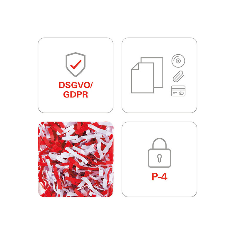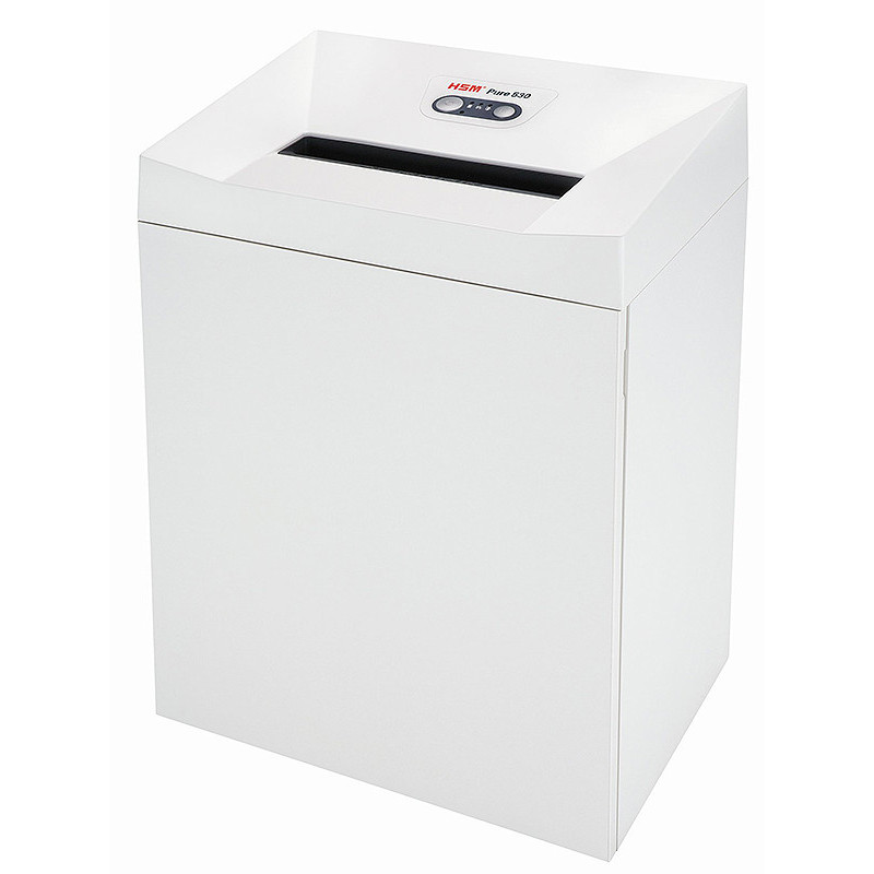 Skartovací stroje PURE 530, mají rozšířený vstup na skartování papírů formátu A3 a zvětšený zásobník o objemu 80 l. Stejně jako ostatní stroje této nové řady byly vyvinuty v souladu s nejnovějšími trendy v kancelářské technice. Jsou tiché, spolehlivé, plně automatické, s důrazem na úsporu elektrické energie dle zásad EMCS. Multifunkční tlačítko zjednodušuje obsluhu, je doplněno kontrolkami plného zásobníku, zahlcení nožů, otevřeného zásobníku a STAND-BY režimu. Na spuštění zpětného chodu je stroj vybaven odděleným tlačítkem. Skartovač se zapíná stisknutím multifunkčního tlačítka. Po uplynutí 2 minut od posledního skartování se stroj přepíná do energeticky úsporného režimu, po delší době se automaticky zcela vypíná. V případě zahlcení spouští řídící deska zpětný chod. Kryt u vstupního otvoru je vybaven bezpečnostním dotykovým spínačem. Objemný zásobník na skartovaný papír je vybaven závěsem na plastové pytle. Pro potřebu separace odpadu při skartování plastových karet nebo CD/DVD se pod skartovací hlavou nasunuje speciální tkaninový vak. Skartovač je vybaven otočnými pojezdovými kolečky.CERTIFIKÁT NBÚ Stupně utajení dle GDPR: P-4 / O-3 / T-4 / E-3 / F-1