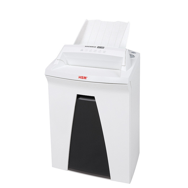 Moderní skartovací stroj s automatickým podavačem dokumentů. Papíry ke skartování lze vkládat přímo do skartovací štěrbiny ovládané fotobuňkou nebo do otevřeného zásobníku s kapacitou až 300 listů.Nabírání zajišťují otočné segmenty s technologií nanogrip, které jsou spolehlivé i při odebírání dokumentů tištěných na nestejných papírech.Masivní nože v jemném křížovém řezu mají vysoký stupeň utajení. Umožňují zpracování papíru s kancelářskými sponkami a plastových karet. Do odpadní nádoby lze umístit plastový sáček (není nutné).HSM Securio AF300 vyniká tichým chodem, zvýšeným výkonem, spolehlivostí a úsporou elektrické energie v pohotovostním režimu (EMCS).Záruka na stroj 36 měsíců, doživotní záruka na nože.