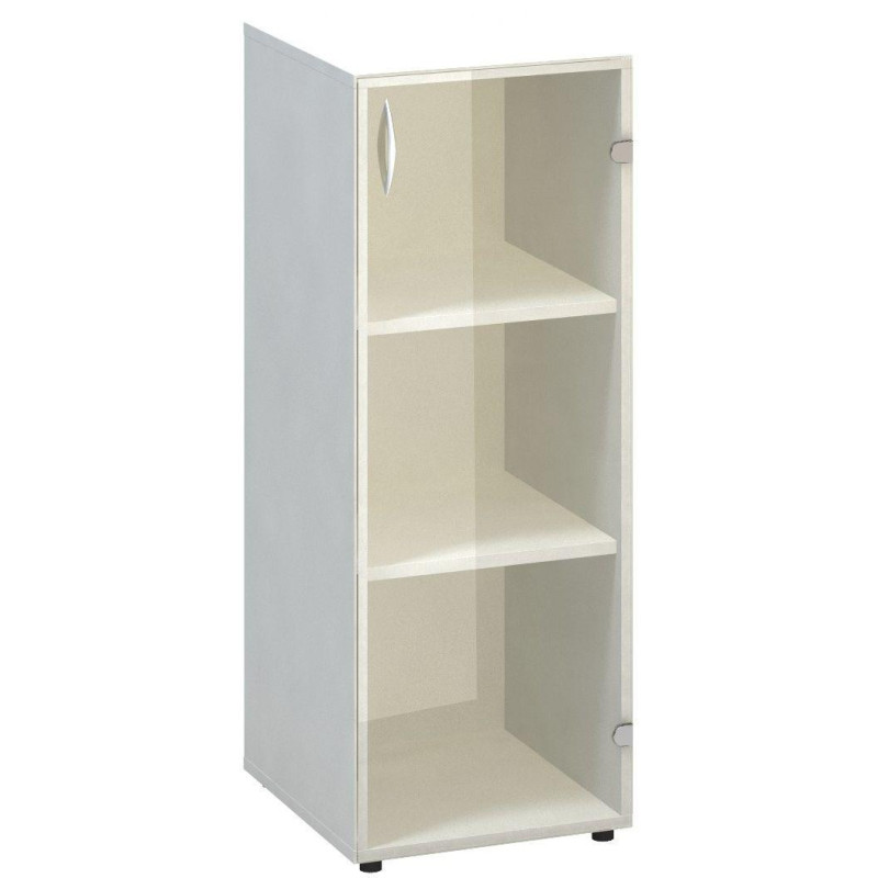 Policová skříň ALFA 500 úzká, 3M pravé dveře sklo, bílá