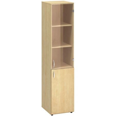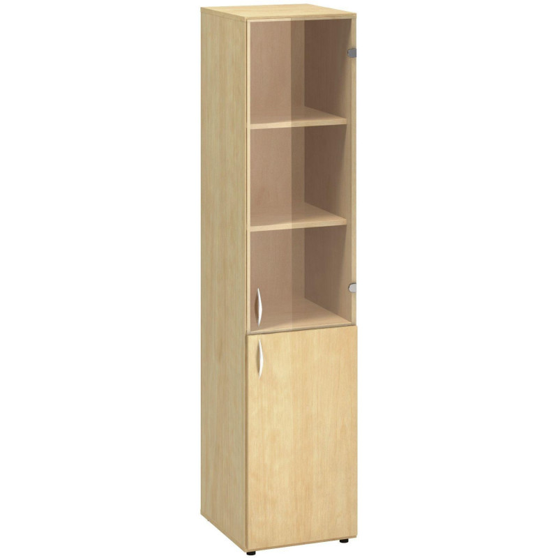 Policová skříň ALFA 500 úzká, 5M (2M pravé dveře / 3M pravé dveře sklo), divoká hruška