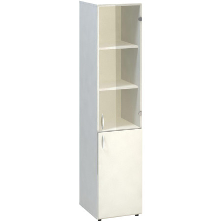 Policová skříň ALFA 500 úzká, 5M (2M pravé dveře / 3M pravé dveře sklo), bílá