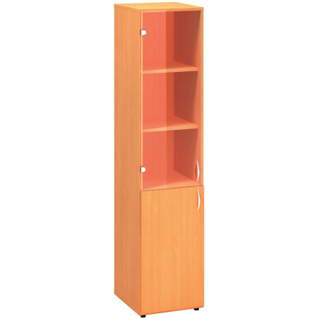 Policová skříň ALFA 500 úzká, 5M (2M levé dveře / 3M levé dveře sklo), buk bavaria