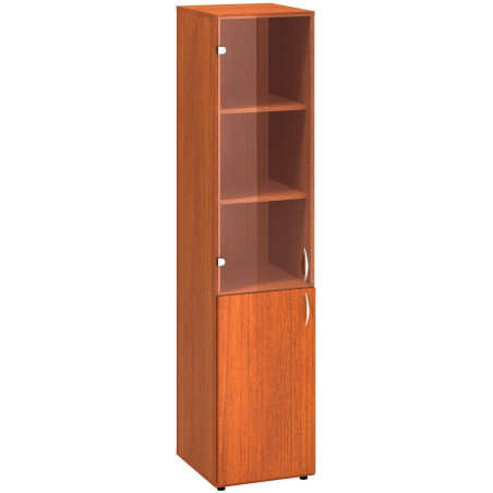 Policová skříň ALFA 500 úzká, 5M (2M levé dveře / 3M levé dveře sklo), třešeň