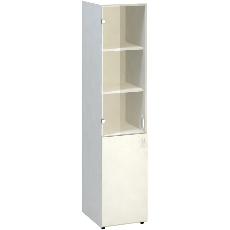 Policová skříň ALFA 500 úzká, 5M (2M levé dveře / 3M levé dveře sklo), bílá