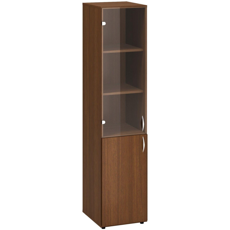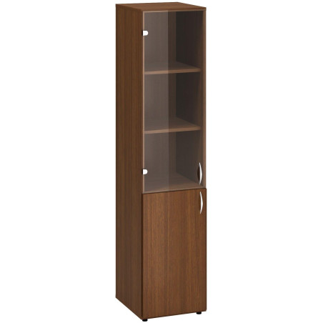 Policová skříň ALFA 500 úzká, 5M (2M levé dveře / 3M levé dveře sklo), ořech