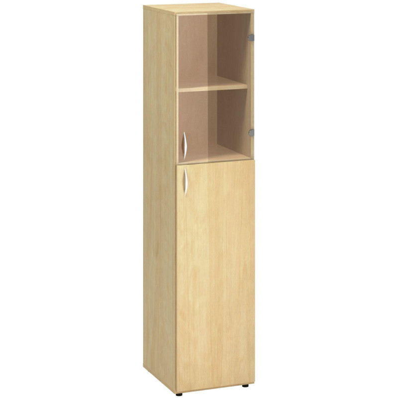 Policová skříň ALFA 500 úzká, 5M (3M pravé dveře / 2M pravé dveře sklo), divoká hruška