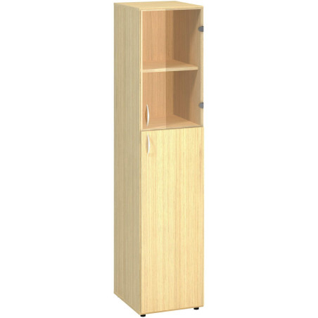Policová skříň ALFA 500 úzká, 5M (3M pravé dveře / 2M pravé dveře sklo), dub vicenza