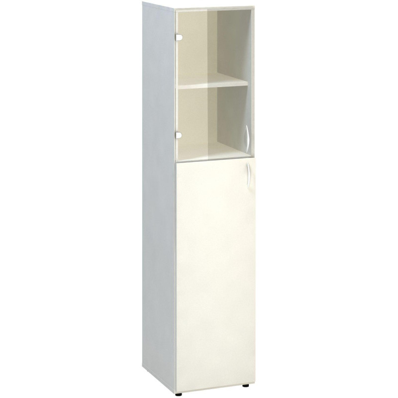 Policová skříň ALFA 500 úzká, 5M (3M pravé dveře / 2M pravé dveře sklo), bílá
