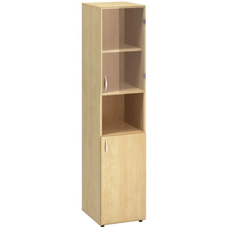 Policová skříň ALFA 500 úzká, 5M (2M pravé dveře / 1M nika / 2M pravé dveře sklo), divoká hruška
