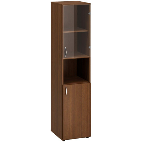Policová skříň ALFA 500 úzká, 5M (2M pravé dveře / 1M nika / 2M pravé dveře sklo), ořech