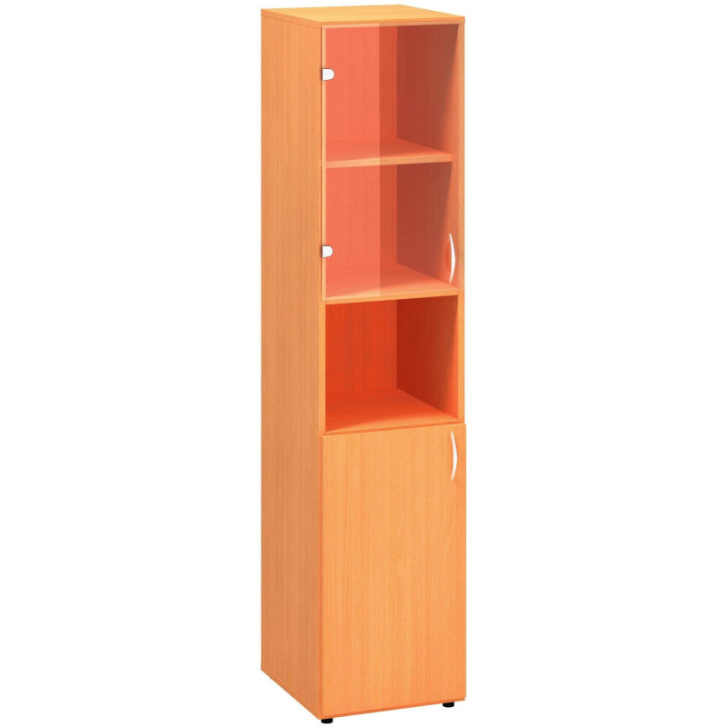 Policová skříň ALFA 500 úzká, 5M (2M levé dveře / 1M nika / 2M levé dveře sklo), buk bavaria