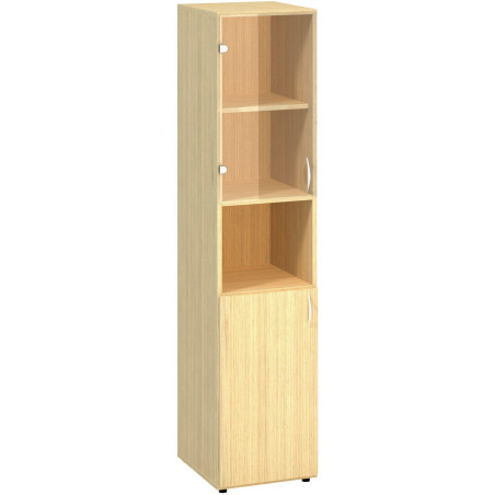 Policová skříň ALFA 500 úzká, 5M (2M levé dveře / 1M nika / 2M levé dveře sklo), dub vicenza