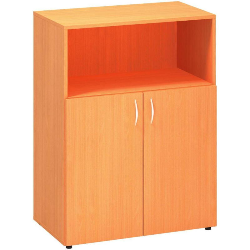 Skříně ALFA 500 mají rektifikaci pro vyrovnání nerovností podlahy až o 1,5 cm. Korpusy z jednoho barevného odstínu LTD tl. 18 mm ukončené 1 mm ABS hranou. Pevná, oboustranná pohledová záda z LTD o tl. 8 mm. Vzhledem k oboustranně pohledové úpravě zad jsou vhodné i do prostoru kanceláře. Křídlové dveře z LTD tl. 18 mm s 2 mm ABS nebo sklo o tl. 6 mm, rozevření dveřních křídel až do úhlu 110°, závěsy dveří click-clack.