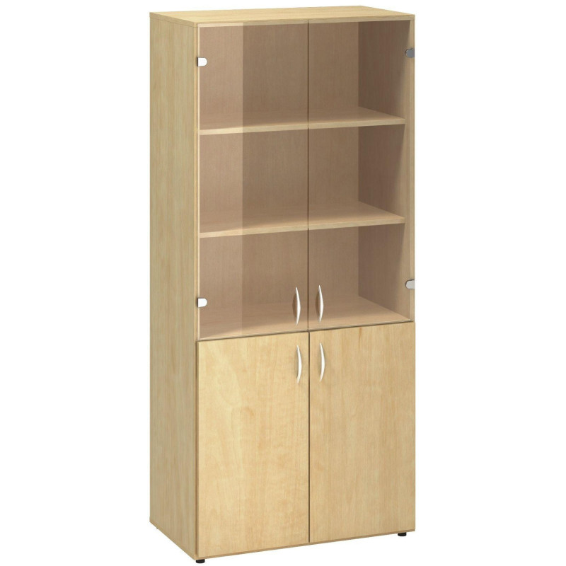 Policová skříň ALFA 500 5M (2M dveře / 3M dveře sklo), divoká hruška