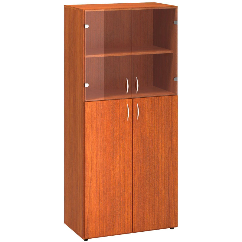 Policová skříň ALFA 500 5M (3M dveře / 2M dveře sklo), třešeň