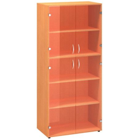 Skříně ALFA 500 mají rektifikaci pro vyrovnání nerovností podlahy až o 1,5 cm. Korpusy z jednoho barevného odstínu LTD tl. 18 mm ukončené 1 mm ABS hranou. Pevná, oboustranná pohledová záda z LTD o tl. 8 mm. Vzhledem k oboustranně pohledové úpravě zad jsou vhodné i do prostoru kanceláře. Křídlové dveře z LTD tl. 18 mm s 2 mm ABS nebo sklo o tl. 6 mm, rozevření dveřních křídel až do úhlu 110°, závěsy dveří click-clack.