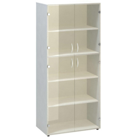 Policová skříň ALFA 500 5M (3M dveře sklo / 2M dveře sklo), bílá