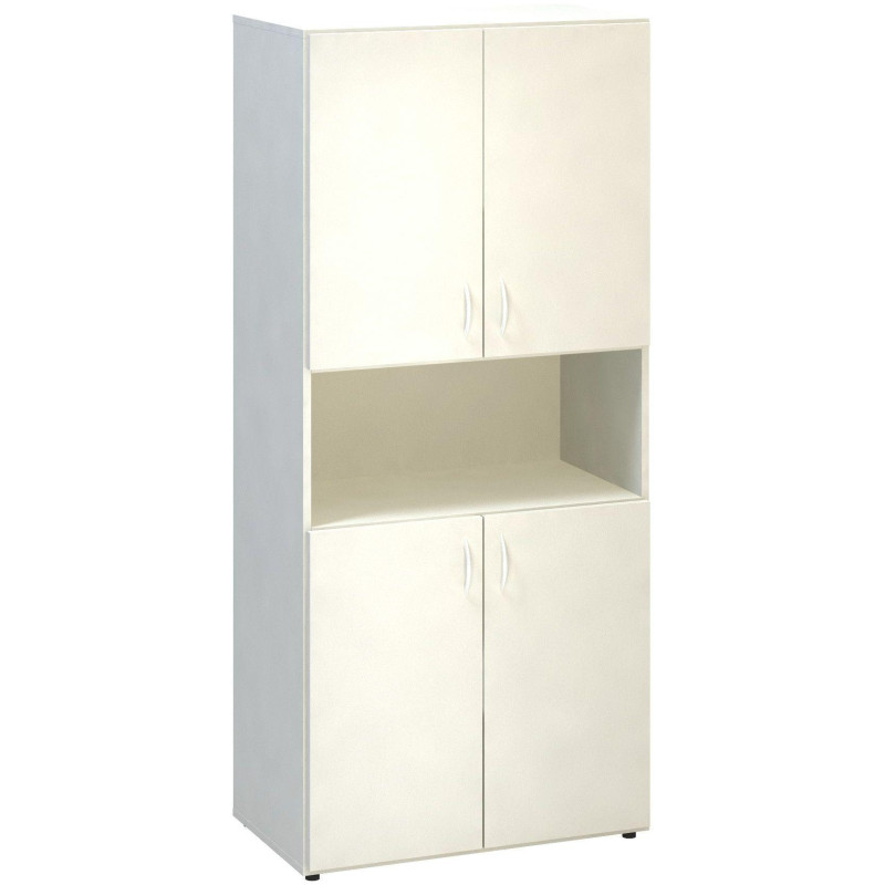 Policová skříň ALFA 500 5M (2M dveře / 1M nika / 2M dveře), bílá