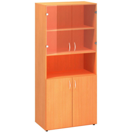 Policová skříň ALFA 500 5M (2M dveře / 1M nika / 2M dveře sklo), buk bavaria