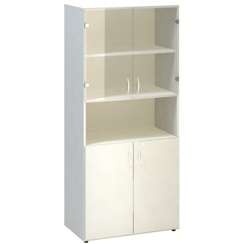 Policová skříň ALFA 500 5M (2M dveře / 1M nika / 2M dveře sklo), bílá