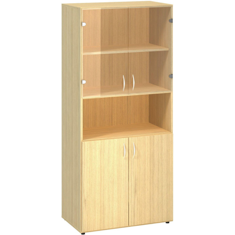 Policová skříň ALFA 500 5M (2M dveře / 1M nika / 2M dveře sklo), dub vicenza