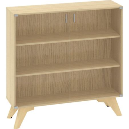 Modelová řada ALFA ROOT respektuje současnou potřebu lidí vracet se k přírodě a obklopovat se přírodními materiály. Proto je i řada ALFA ROOT jakýmsi návratem k našim kořenům – a to s ohledem na design i použité materiály. Nohy u modelové řady ALFA ROOT jsou zhotoveny z masivního dřeva (jasanu) Jelikož jde o přírodní materiál, tak se kresba let a barevný odstín dřeviny mohou lišit a do budoucna měnit své zabarvení. Korpusy z jednoho barevného odstínu LTD tl. 18 mm ukončené 1 mm ABS hranou. Pevná, oboustranná pohledová záda z LTD o tl. 8 mm. Vzhledem k oboustranně pohledové úpravě zad jsou vhodné i do prostoru kanceláře. Křídlové dveře z LTD tl. 18 mm s 2 mm ABS nebo sklo o tl. 6 mm, rozevření dveřních křídel až do úhlu 110°, závěsy dveří click-clack.