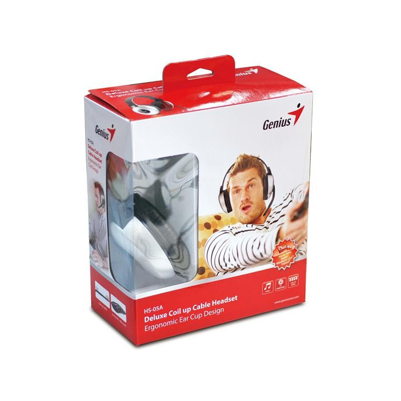 Užijte si jasný zvuk se sluchátky HS-05A od firmy Genius. Tato luxusní sluchátka s klapkami plné velikosti předchází nepohodlí uší po dlouhém používání, upravitelná spojovací čelenka a kožené klapky jsou flexibilní k lepšímu padnutí kolem vaší hlavy. Gumový mikrofon je možno ohnout do ideální polohy k přenosu lepší kvalitu hlasu, navíjecí kabel předchází zamotávání drátů. Hlasitost se snadno změní s použitím ovládání hlasitosti na drátě sluchátek.