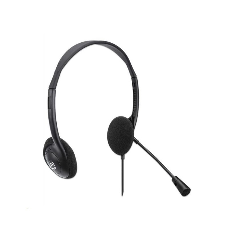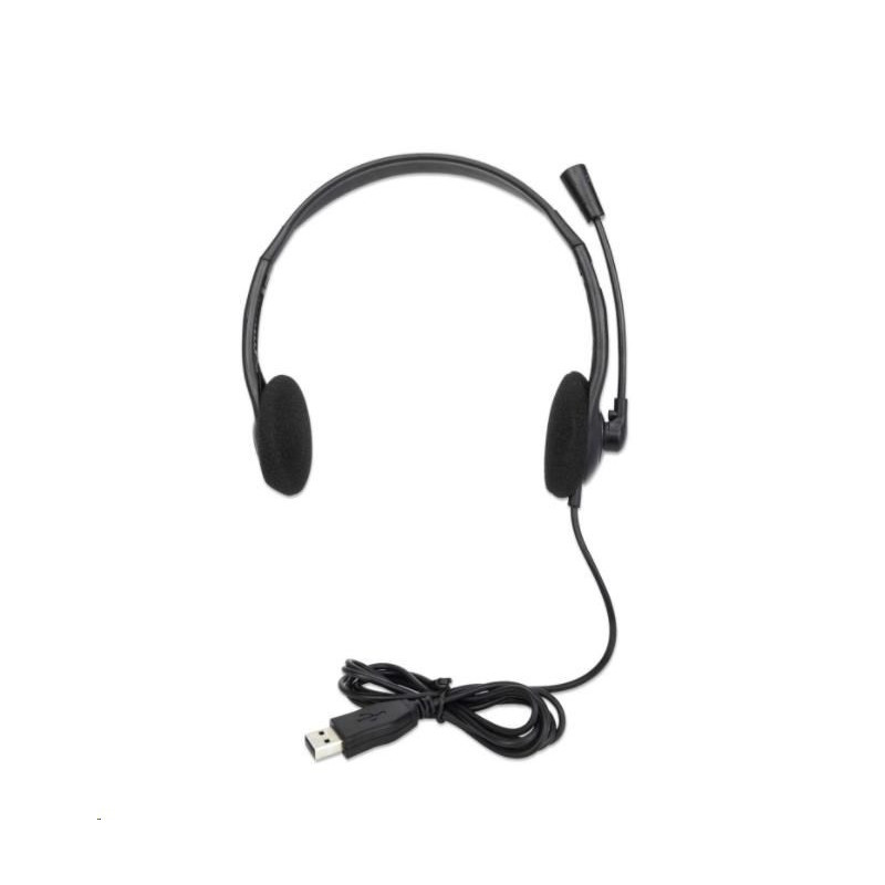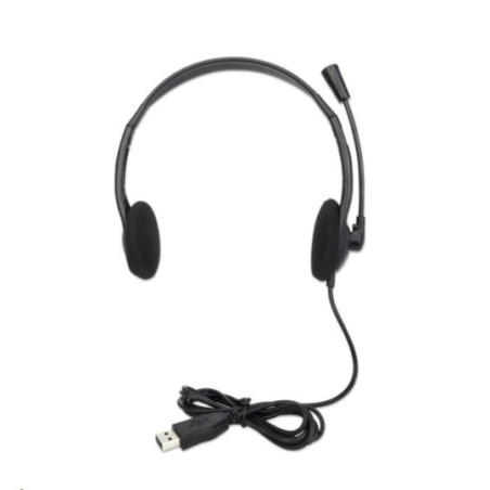 Lightweight On-ear Design, Wired, USB-A Plug, Adjustable Microphone, Black