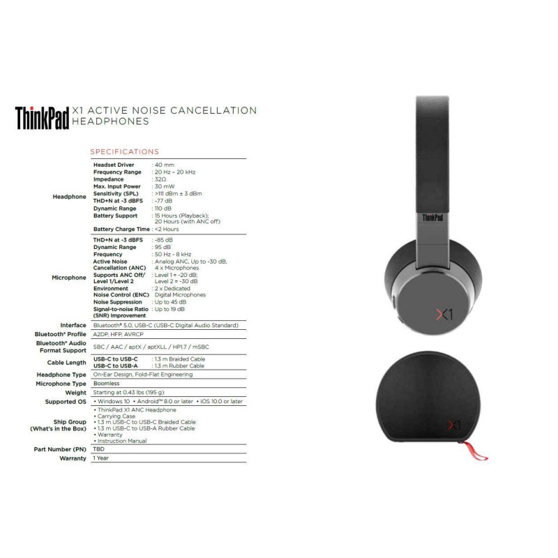 Lenovo sluchátka ThinkPad X1 s aktivním potlačením hluku
