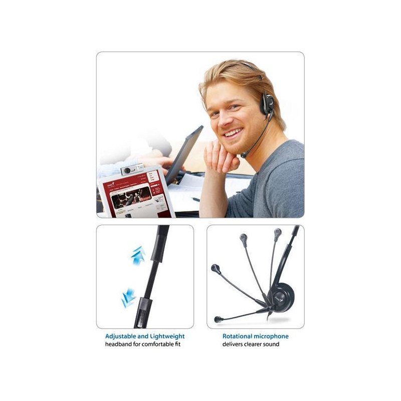 Popis produktu: • Nastavitelná velikost • Měkké sluchátka • Otočný mikrofon • Vhodné pro MSN, SKYPE a chatování po internetu Frekvenční rozsah: 20Hz~20KHz Citlivvost sluchátek: 105dB Impedance (@1KHz): 32ohm Délka kabelu: 1.8m Citlivost mikrofonu: -38dB Rozhraní: 3.5mm jack Ovládání hlasitosti: Ne Hmotnost: 57g