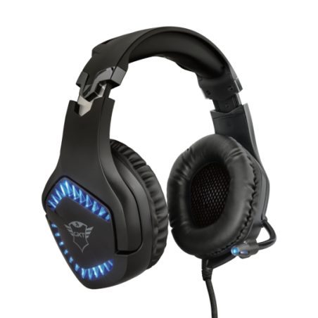 Over-ear gaming headset with powerful 50 mm driver units and blue illuminated sides