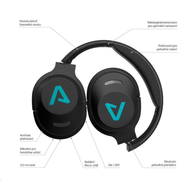 Konstrukce sluchátek a pohodlné náušníky umožňují dlouhotrvající poslech a skládací design zaručí, že je můžeš mít vždy s sebou.